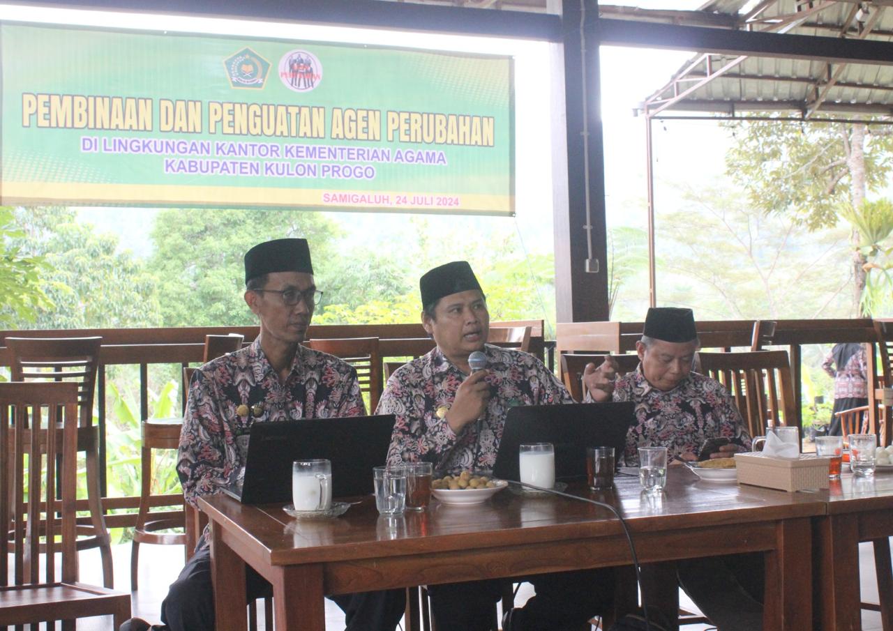Acara dibuka oleh Kepala Kankemenag Kab. Kulon Progo, M. Wahib Jamil, S.Ag., M.Pd., yang menekankan pentingnya peran agen perubahan dalam menciptakan birokrasi yang bersih dan melayani. Selain itu, Isman, S.Pt, S.Ap dan Agus Yunianto, SE., M.AP, selaku narasumber dalam acara tersebut, memberikan paparan mengenai strategi dan langkah konkret yang harus diambil untuk membangun zona integritas.