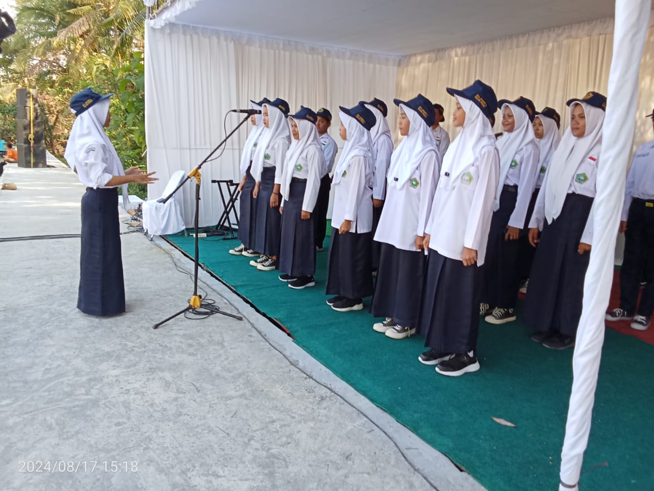 Kulon Progo (MTsN 3 Kulon Progo) – Sebanyak 31 siswa yang tergabung dalam Tim Paduan Suara (Tim Padus) Madrasah Tsanawiyah Negeri (MTsN) 3 Kulon Progo sukses tampil mengiringi pengibaran dan penurunan bendera Merah Putih pada Upacara Peringatan detik – detik Proklamasi Kemerdekaan Republik Indonesia ke-79 tahun 2024 Kapanewon Nanggulan , Sabtu (17/08/24) di lapangan Tanjungharjo.