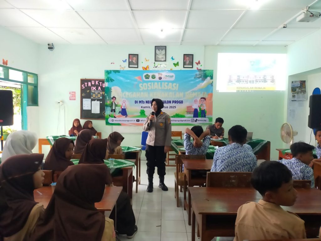 Kasat Binmas Polres Kulon Progo AKP Dina Martanti, SH. M.M. sebagai nara sumber menyampaikan pencegahan kenakalan remaja dapat dilakukan secara berkelanjutan dan melibatkan orang tua serta masyarakat. “Kita perlu bekerja sama dengan semua pihak untuk menciptakan lingkungan yang aman bagi anak-anak kita,” tegasnya. Dengan adanya sosialisasi ini, diharapkan siswa-siswi di MTsN 3 Kulon Progo semakin sadar akan bahaya kenakalan remaja dan dapat mengambil keputusan yang bijak dalam berinteraksi dengan lingkungan sosial mereka. Kegiatan ini juga menjadi sarana penting untuk menyebarkan informasi dan mendukung satu sama lain dalam mencegah perilaku negatif.