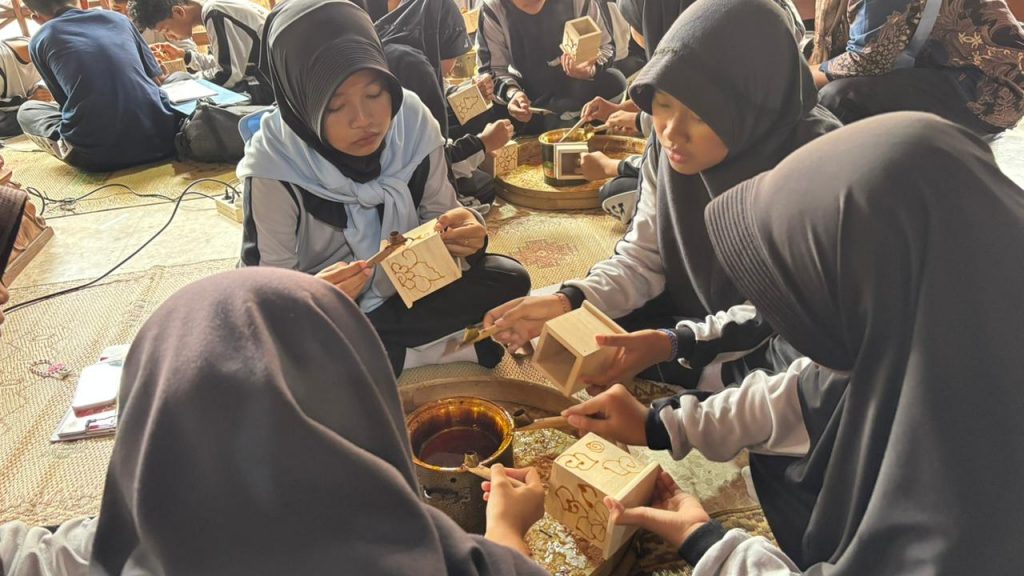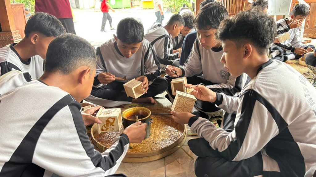 Peserta Didik MTsN 3 Kulon Progo Belajar Batik Kayu di Desa Wisata Krebet pada Kegiatan PLS