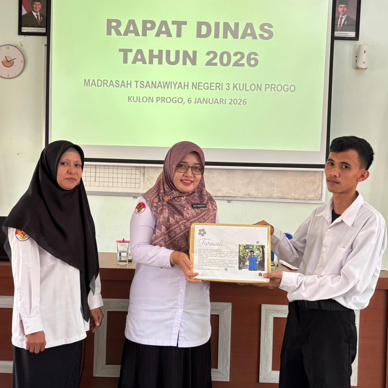 Kulon Progo (MTsN3KP) – MTsN 3 Kulon Progo melaksanakan kegiatan pelepasan tenaga kependidikan Rovik Rismanta yang resmi diterima menjadi Aparatur Sipil Negara (ASN) di MAN 3 Kulon Progo. Kegiatan pelepasan ini menjadi momen apresiasi atas pengabdian yang telah diberikan selama bertugas di MTsN 3 Kulon Progo.