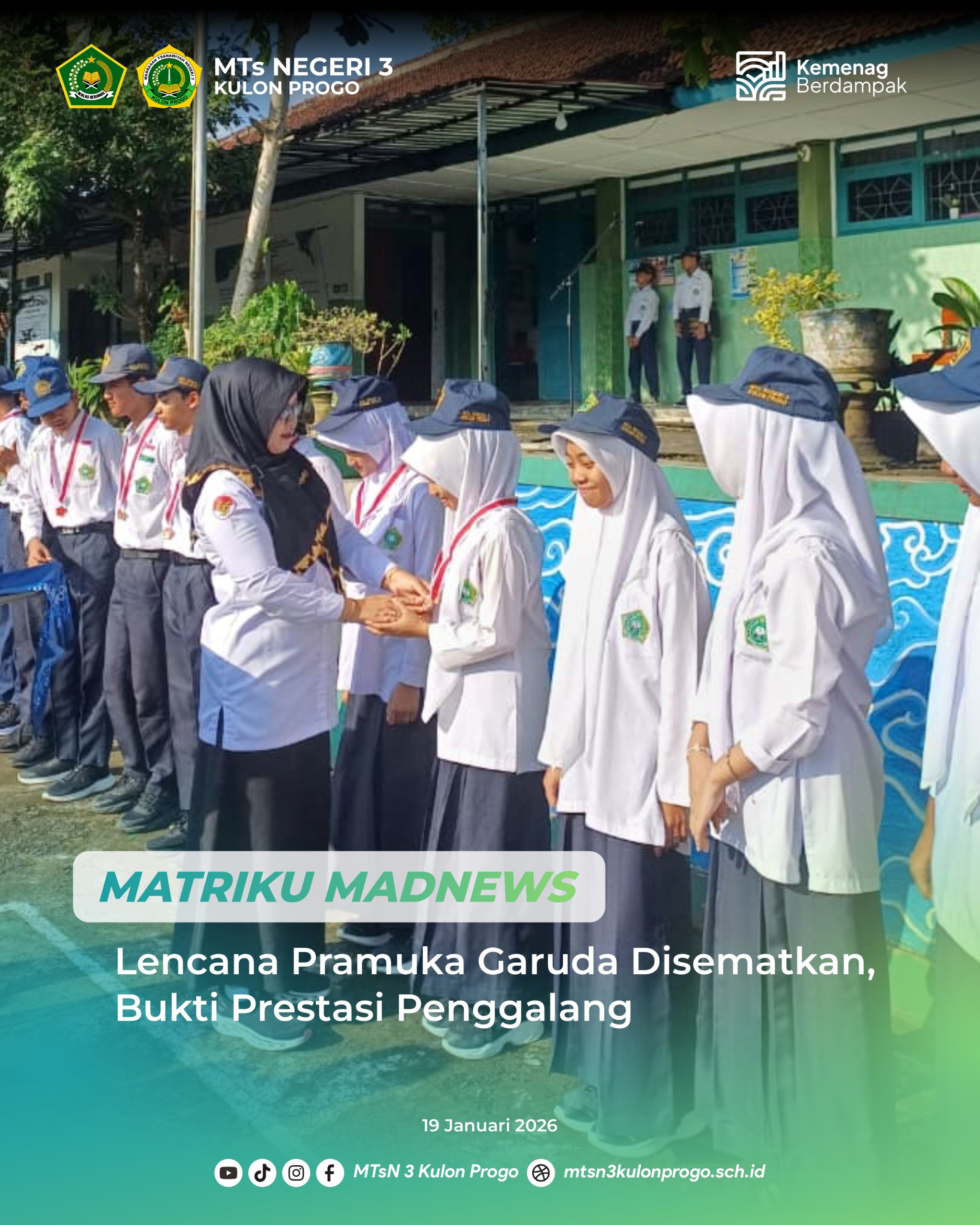 Kulon Progo (MTsN3KP) – MTsN 3 Kulon Progo melaksanakan penyematan lencana Pramuka Garuda pada saat upacara bendera hari Senin yang berlangsung di lapangan madrasah pada …