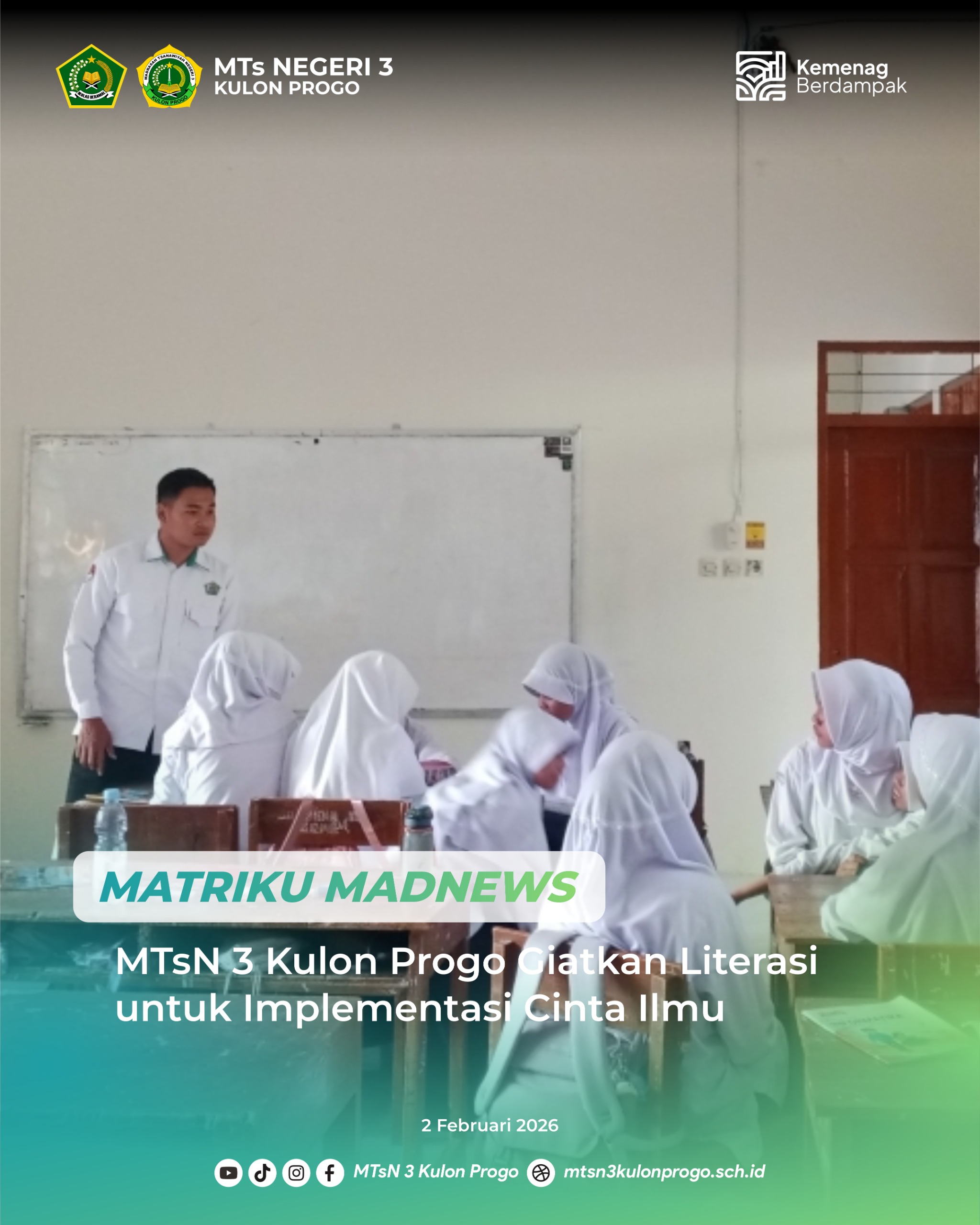 Kulon Progo (MTsN3KP) – MTsN 3 Kulon Progo melaksanakan kegiatan literasi sebagai bentuk nyata implementasi cinta ilmu pada Senin (2/2/2026). Agenda yang diikuti oleh murid …