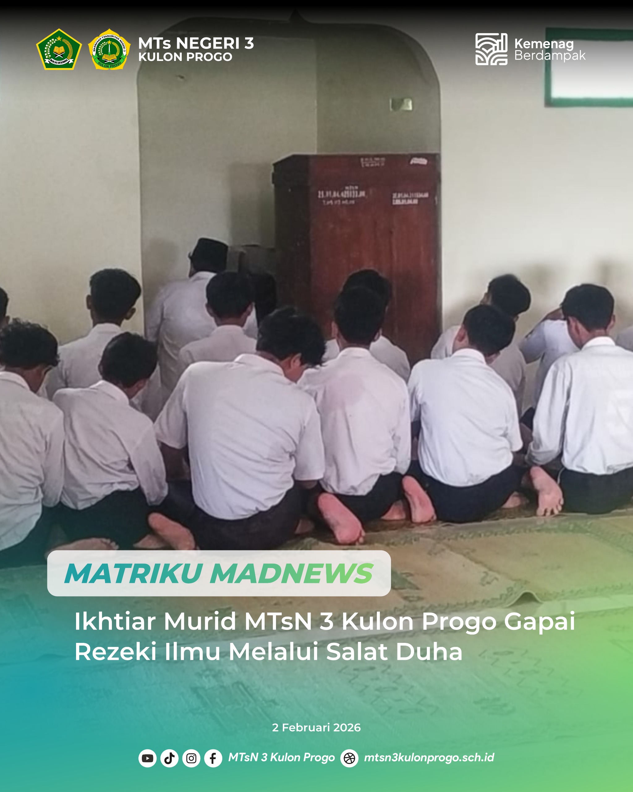 Kulon Progo (MTsN3KP) — Murid kelas IX MTsN 3 Kulon Progo melaksanakan salat duha bersama pada Senin (2/2/2026) di Musala Baiturrahman. Kegiatan ini diikuti oleh …